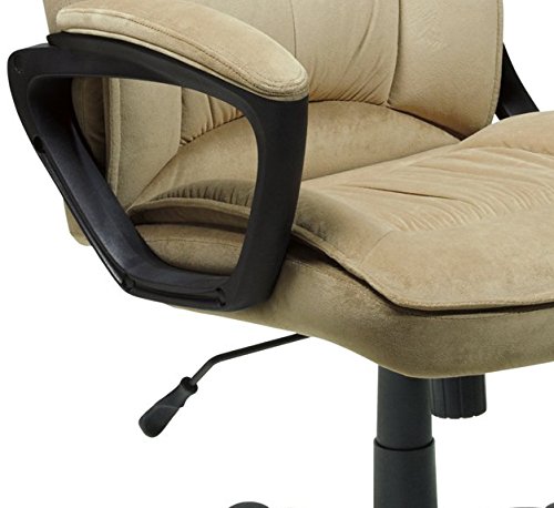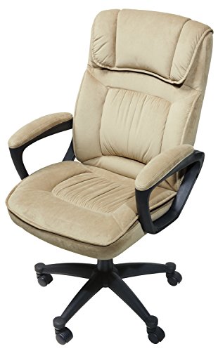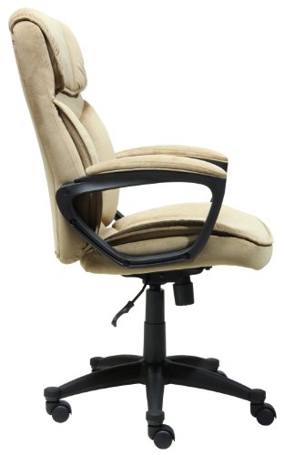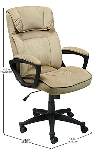 For more than 75 years, Serta has been an industry leader in comfort products worldwide. That tradition of innovation and quality continues today. From a brand that is synonymous with quality, comfort and style, the Serta executive office chair is upholstered in soft and durable Light Beige microfiber. This chair features soft pillowed headrest & plush layered body pillows which offer the body a serene and tranquil seating experience. The contoured lumbar provides exceptional support for the lower-back, while the sculpted arms have pillow soft pads which provide added hand, wrist, and forearm comfort. The waterfall seat edge is designed to lessen pressure on the back of the legs, and increase circulation, to reduce fatigue and increase working focus. The pneumatic gas lift adjusts the seat height by a simple flick of the lever. Pulling out the same handle will unlock the recline mechanism and allow you to lean back in comfort. The recline resistance can be adjusted with a turn of the tension knob on the bottom of the seat. Smooth rolling multi-surface dual wheel casters provide easy access to your surrounding work area. The heavy duty five-star base meets or exceeds rigorous BIFMA testing standards up to a 250lbs weight capacity. Measures 24.75" wide by 28.75" deep by 44" high. It is delivered in 1 box measuring 27" long by 25" wide by 14" high. 1 year limited warranty. Product assembly is required. Designed in the USA. Manufacturer style number is 43670Features a soft, pillowed headrest for added neck comfort and support and plush